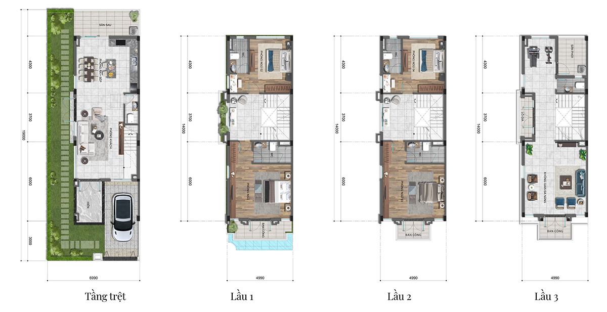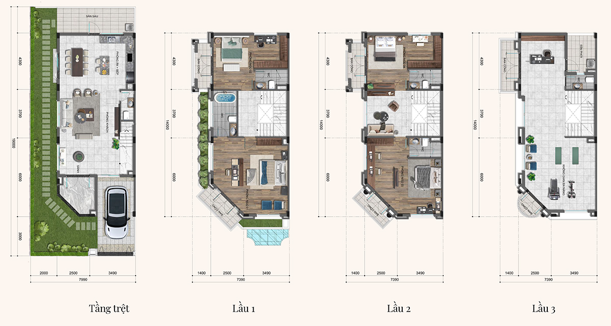 • Diện tích trung bình: 153 – 528m2